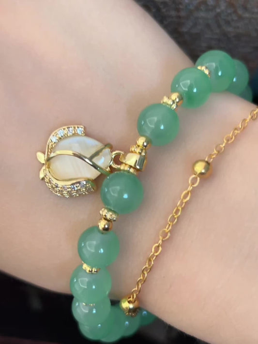 With Golden Shiny Tulip Radiant Springtime Charm - Tulip Green Jade Bracelet